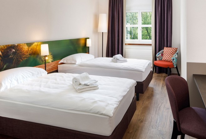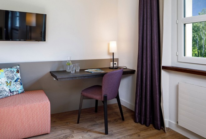 Die modern eingerichteten Zimmer besitzen alle eine Aussicht in die Natur und bieten deswegen eine ruhige Erholungsoase fernab vom Verkehr. In jedem Zimmer gibt es eine selbstregulierbare Klimaanlage, eine gemütliche Sitzecke, einen Flachbildschirm mit Kabel-TV, kostenloses Wi-Fi, USB-Steckdosen, eine Steckdose für Eurostecker und ein eigenes Badezimmer mit Dusche, Toilette, Adapter für einen Rasierapparat und einen Fön.