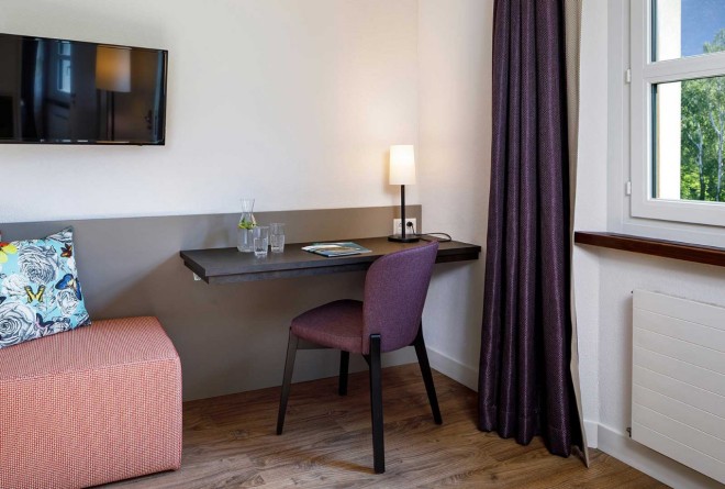 Die modern eingerichteten Zimmer besitzen alle eine Aussicht in die Natur und bieten deswegen eine ruhige Erholungsoase fernab vom Verkehr. In jedem Zimmer gibt es eine selbstregulierbare Klimaanlage, eine gemütliche Sitzecke, einen Flachbildschirm mit Kabel-TV, kostenloses Wi-Fi, USB-Steckdosen, eine Steckdose für Eurostecker und ein eigenes Badezimmer mit Dusche, Toilette, Adapter für einen Rasierapparat und einen Fön.